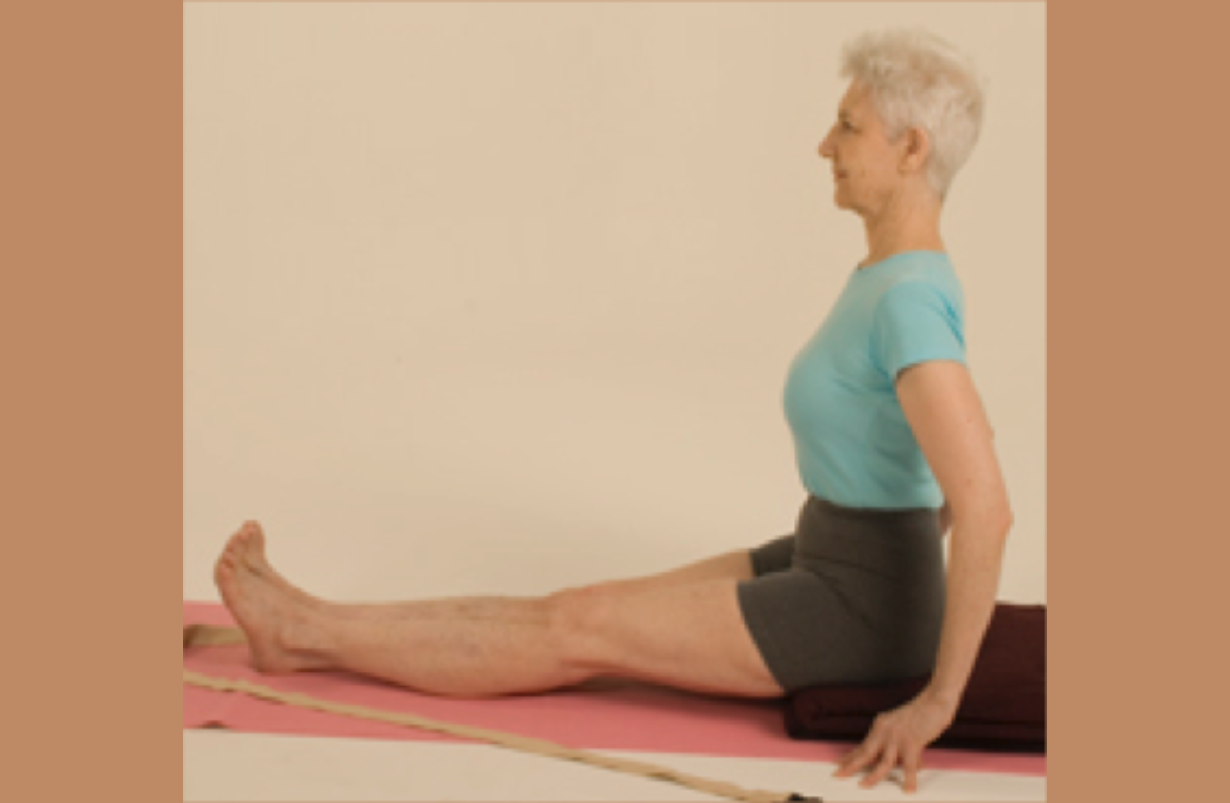 If you have difficulty bring your side hip bones directly over your sit bones, try the pose with a blanket folded and placed under your buttocks to raise you up a little. This will help you to tilt the pelvis forward.  Your hamstrings won’t stretch as much with the lift underneath you and this can make the pose more accessible. Adjust the height of your prop until you can sit comfortably with a vertical pelvis.  A beginner should also practice the pose without the blanket.